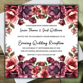 We are thrilled to present our exquisite collection of beautiful rustic floral personalised day and evening invitations. Featuring intricate wildflower wreaths, vibrant sunflowers, romantic delicate roses, and elegant eucalyptus designs, our invitations add a touch of elegance to your special day. Let us help you create the perfect invitation suite that reflects your unique style and personality.